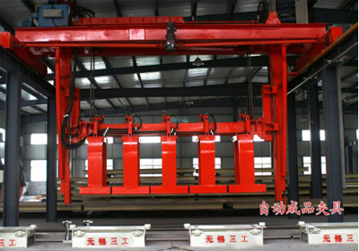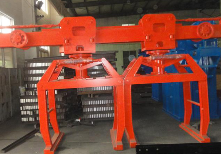 成品行車和夾具主要用于包裝工段,把坯體從側(cè)板輥道吊至合模機(jī)上。