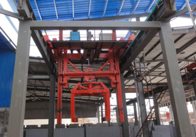 翻轉(zhuǎn)行車和吊具主要用于模具脫模.使側(cè)板坯體和模具分離。