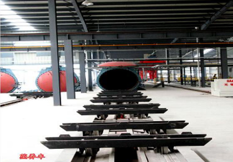 蒸養(yǎng)小車是生產(chǎn)過程中的專用運輸車輛,其裝載著切割后的坯體,進(jìn)入蒸壓釜護(hù)養(yǎng)。護(hù)養(yǎng)后,將成品運送至成品場地,成品被吊卸后,蒸養(yǎng)車再次載坯體入釜護(hù)養(yǎng)。
